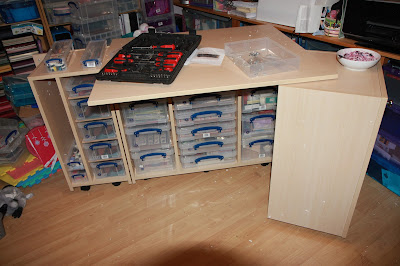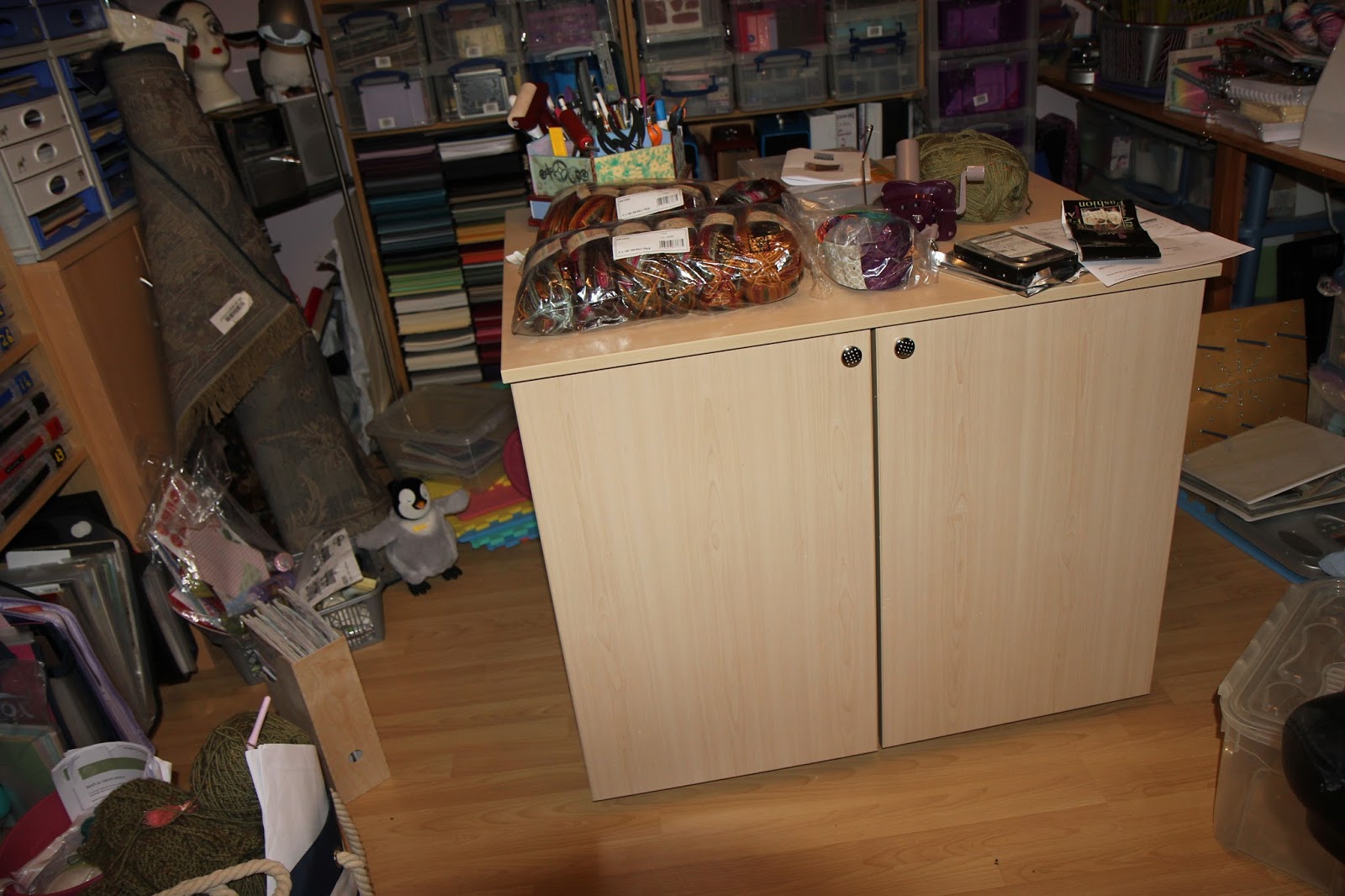 I had to clear out my craft room when my husband was supposed to be coming home, and I had a hospital bed and equipment installed in here ready, which meant a lot of boxes of stash were relocated upstairs and to any available space. After (my husband died in the hospice) the equipment was collected I decided that I didn't want the table that was in here with all it's messy boxes underneath.