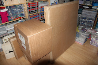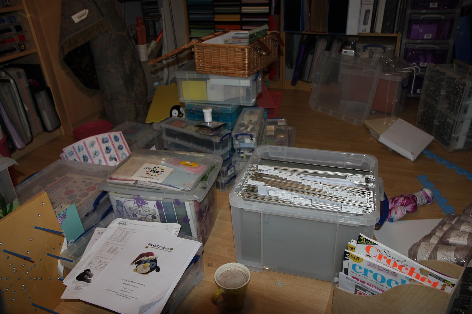 Well I've not joined in for many months at Elizabeth's and Bleubeard's place for tea on Tuesday, but here I am with my hot chocolate in the foreground surveying heaps of boxes.