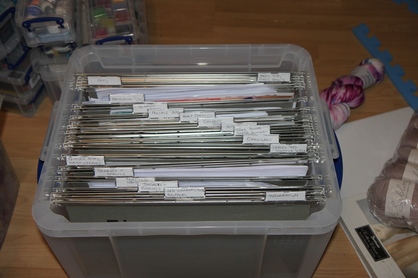 This 35l box will not fit the unit, not sure where I will put it. I bought two that hold hanging files, the first one is 19l but I wasn't sure one would be big enough, and I decided to use this one instead for all of my (mostly printed) crochet patterns in the same place and labelled into types of pattern so I can find them easier, except for those (now probably vintage) ones I have in a folder, and the crochet magazines. I have sorted all the loose patterns into here now. There is room for more when I print them too! Some of the magazines I buy digitally and only print the patterns I really want to make one day......not sure which one day!